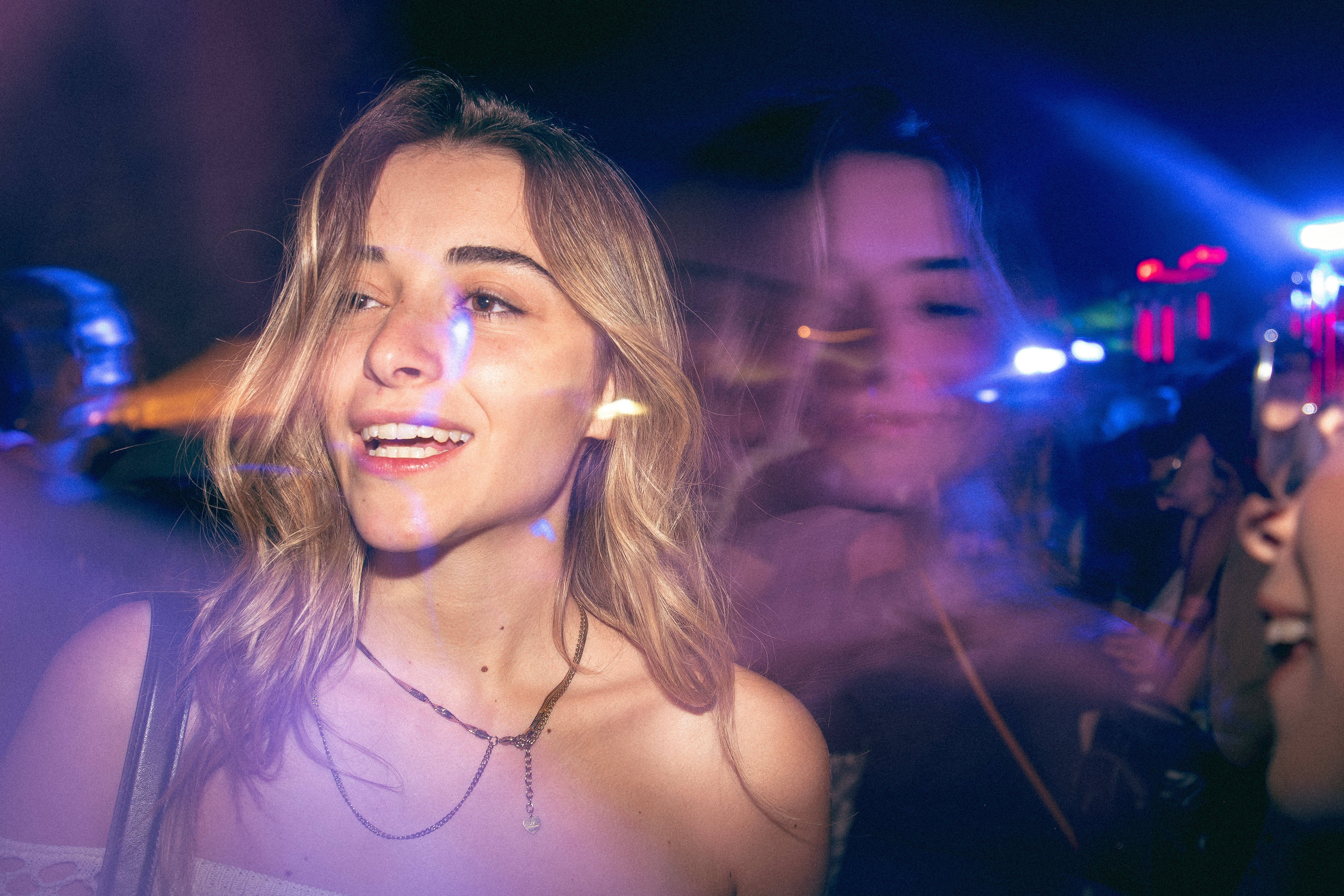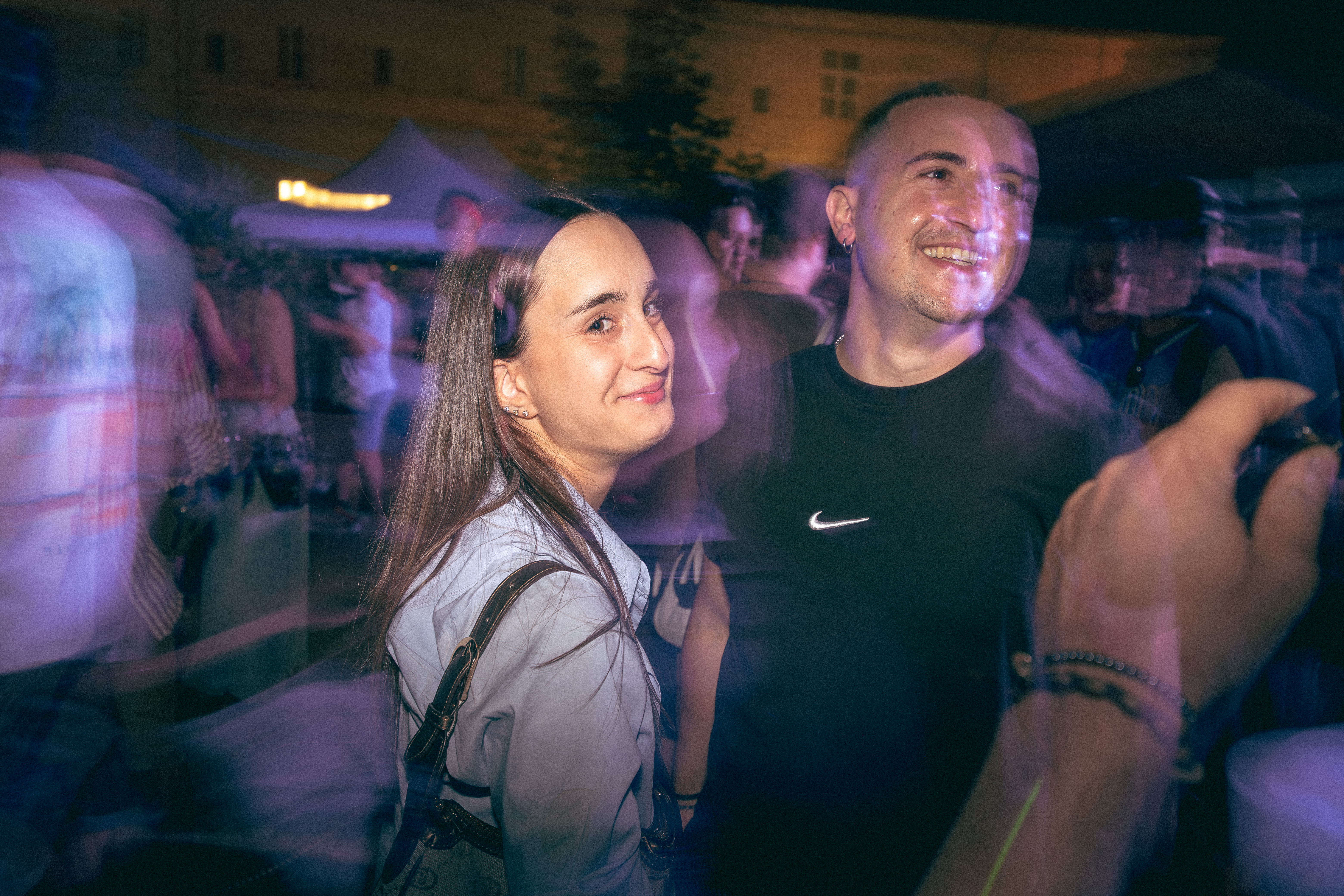 Ho scattato con flash in seconda tendina, tempi lenti, grana tirata fuori con orgoglio. Nessuna post produzione patinata. Nessuna correzione a posteriori. Ogni scatto è rimasto com’era: sfocato se doveva esserlo, mosso se stava succedendo qualcosa.